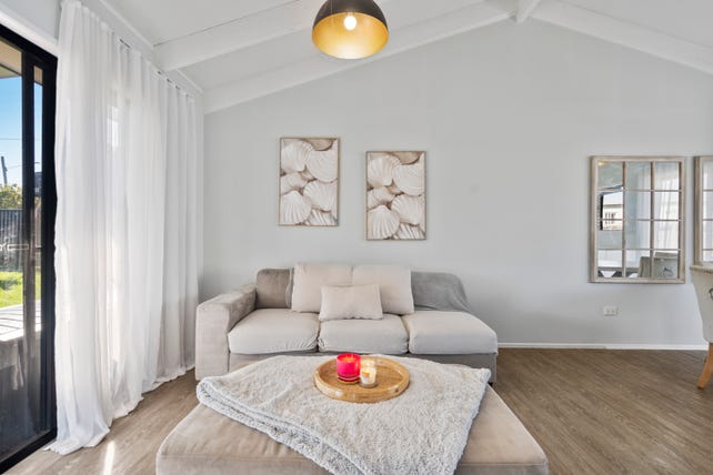 • The open-plan living area is light and airy, brought together by modern vinyl flooring that runs throughout the home, giving the entire space a cohesive, contemporary look. Whether you're relaxing with a book or hosting friends, the living space is both functional and inviting.