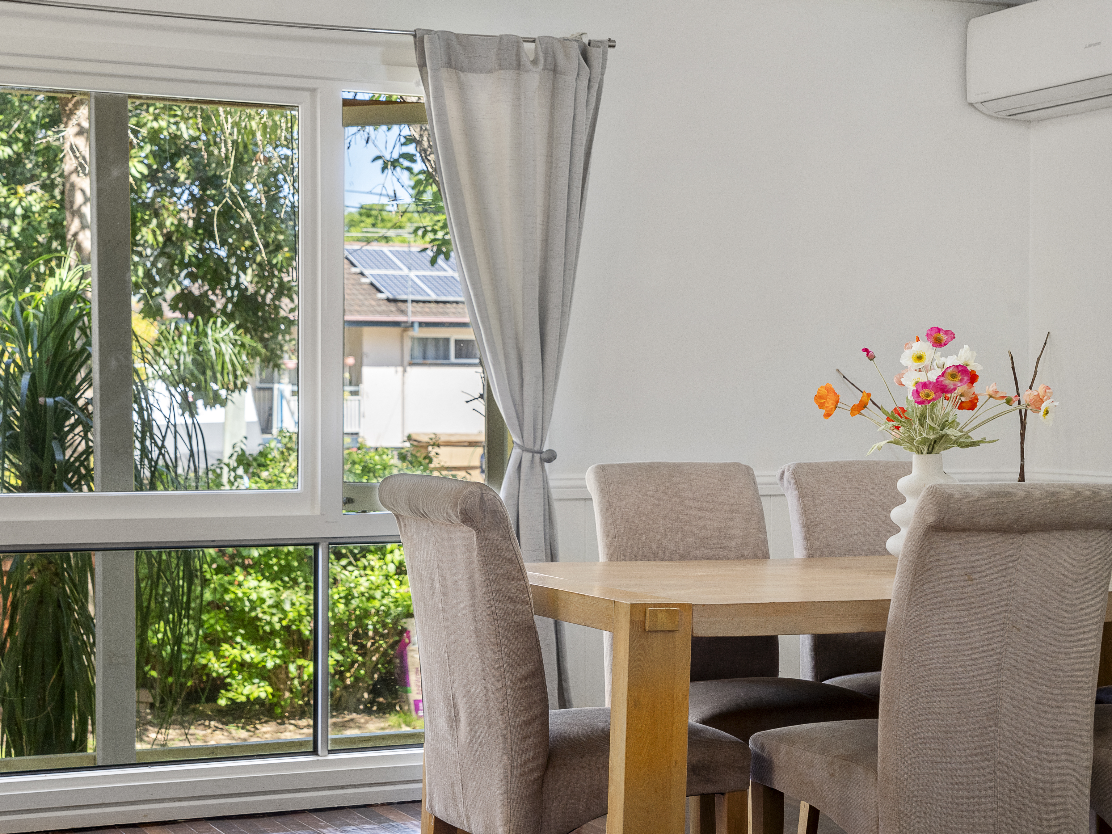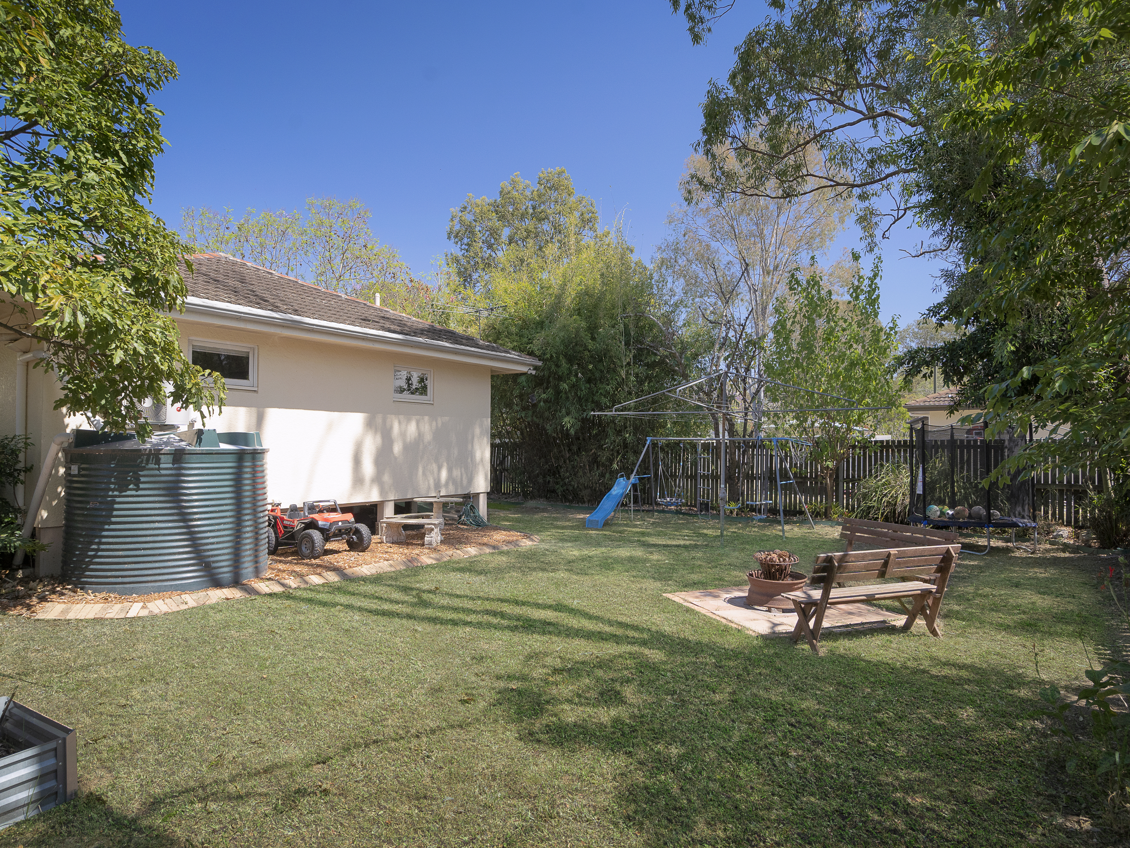 • Move in ready home! • Lots of natural light • Three bedrooms, two with built-in robes • Open-plan lounge and dining • Air conditioning • Kitchen features gas cooking, pantry, and double sink • Bathroom with bathtub • Separate toilet • Laundry room with storage and external access • Linen and storage cupboards • Front covered deck • Solar panels • Polished timber floors • Fully fenced enclosed level yard • Landscaped gardens with leafy driveway, pavers, and fire pit area • Garden shed and water tank • Single carport with roller door • 632m² block
