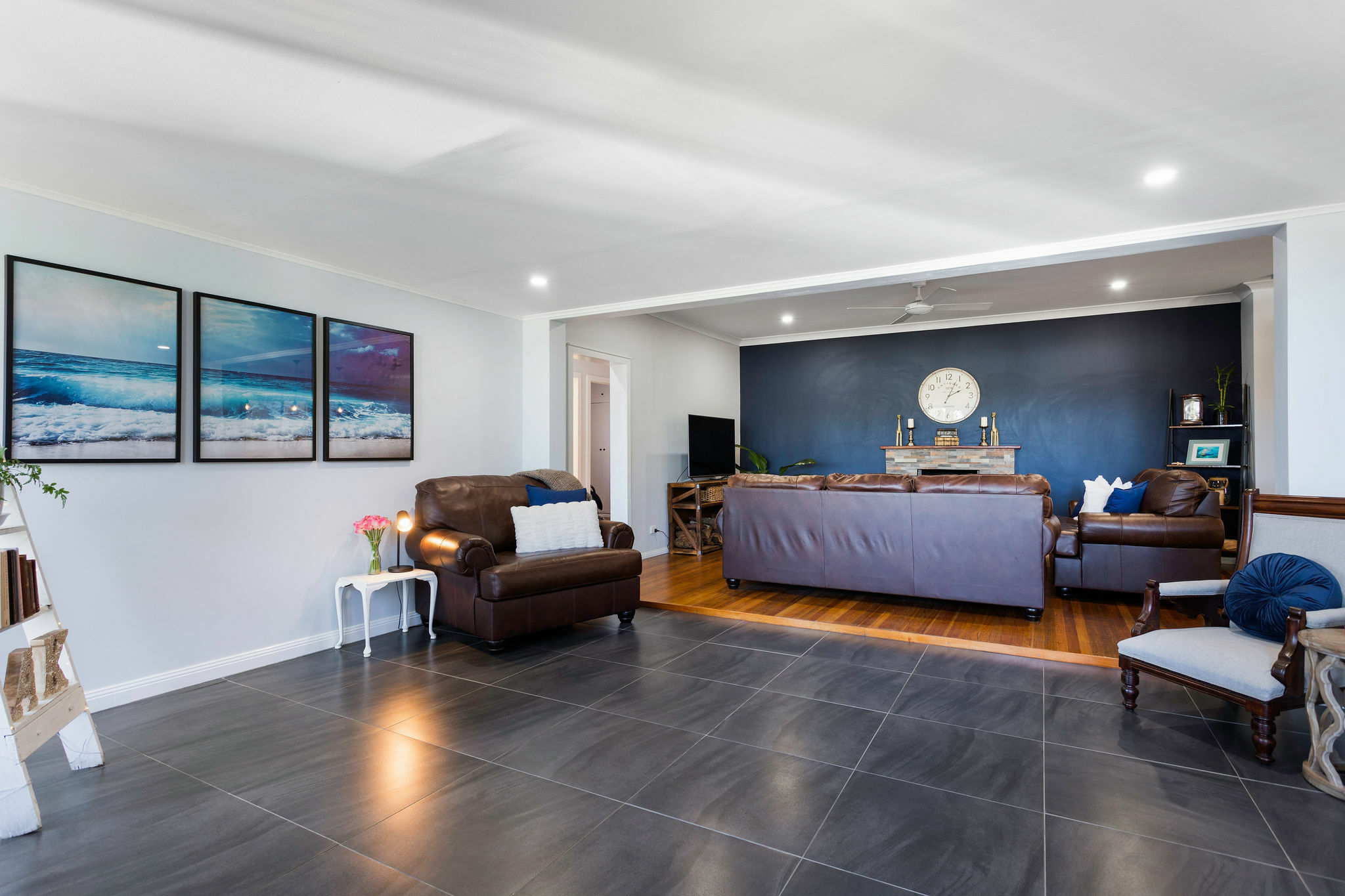 Open plan living on a massive scale incorporating oversized lounge with working stacker stone fireplace. Large dining area, and fabulous kitchen with huge pantry and bench space..