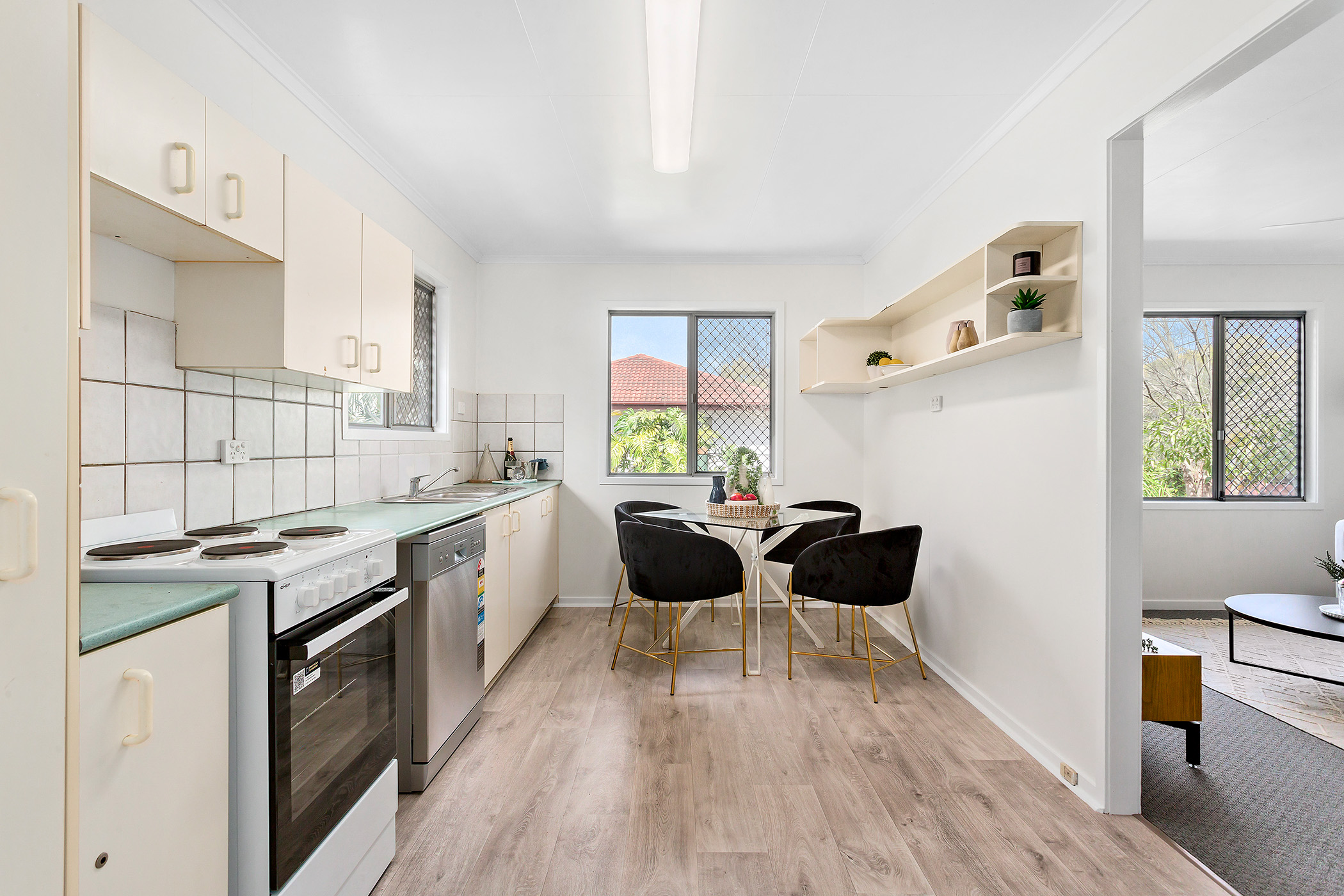 The beautiful front deck welcomes you to the home, and from here you step through to the lounge room which is overflowing with natural light. The living area is actually a fantastic size and steps through to the eat-in kitchen which has a good amount of storage space plus a brand new cooker and brand new dishwasher.