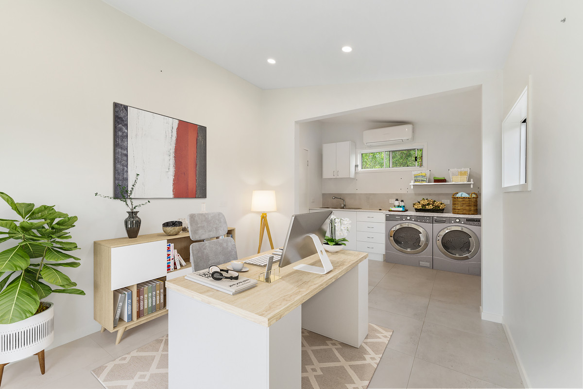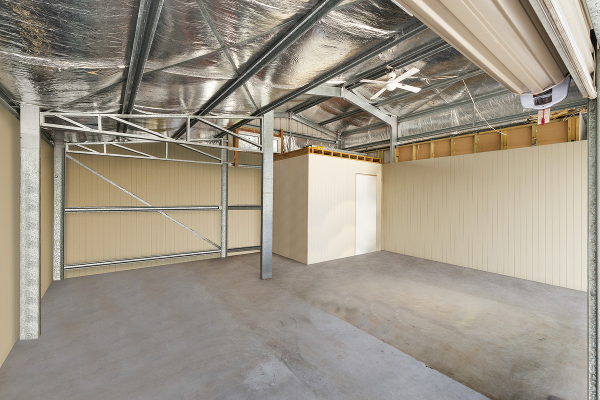 Home office with workshop, bathroom and private entry. Ideal for extra cars, boat or caravan and business/storage needs alongside a bathroom and open room.
